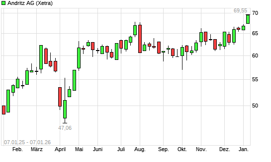 Mit dem Anstieg auf 67,50 EUR hat die Andritz-Aktie (ISIN AT0000730007) am 06.01.2026 ein neues All-Time-High erreicht und damit den Kurs vom 05.01.2026 eingestellt.