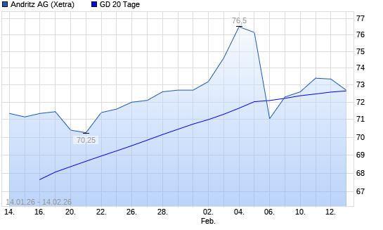 Mit dem Anstieg auf 72,75 EUR hat die Andritz-Aktie am 13.02.2026 die 20-Tage-Linie nach oben gekreuzt.