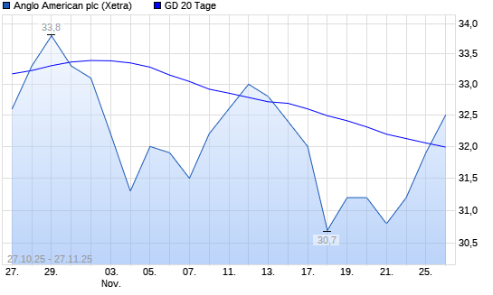 Mit dem Anstieg auf 32,00 EUR hat die Anglo American-Aktie am 26.11.2025 die 20-Tage-Linie nach oben gekreuzt.