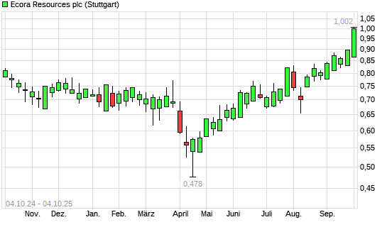 Mit dem Anstieg auf 1,00 EUR hat die Anglo Pacific Group-Aktie (ISIN GB0006449366) am 03.10.2025 ein neues 12-Monats-Hoch erreicht und damit den Kurs vom 01.10.2025 eingestellt.