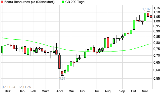 Mit dem Anstieg auf 1,03 EUR hat die Anglo Pacific Group-Aktie am 11.11.2025 die 200-Tage-Linie nach oben gekreuzt.