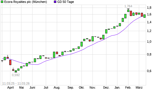 Mit dem Anstieg auf 1,60 EUR hat die Anglo Pacific Group-Aktie am 10.03.2026 die 50-Tage-Linie nach oben gekreuzt.