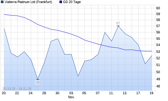 Mit dem Rücksetzer auf 51,20 EUR hat die Anglo Platinum-Aktie am 18.11.2025 die 20-Tage-Linie nach unten gekreuzt.