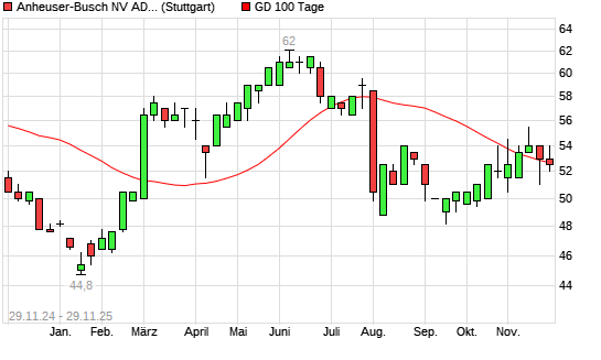 Mit dem Anstieg auf 53,00 EUR hat die Anheuser-Busch InBev ADR-Aktie am 28.11.2025 die 100-Tage-Linie nach oben gekreuzt.