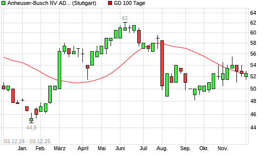 Mit dem Anstieg auf 52,50 EUR hat die Anheuser-Busch InBev ADR-Aktie am 02.12.2025 die 100-Tage-Linie nach oben gekreuzt.