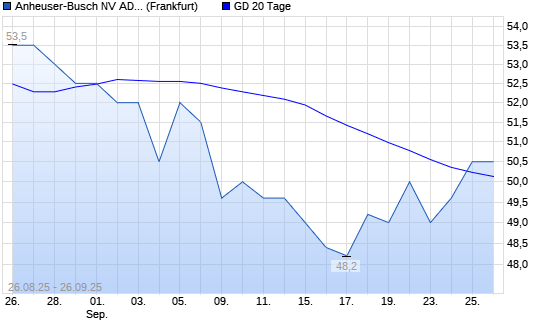 Mit dem Anstieg auf 50,50 EUR hat die Anheuser-Busch InBev ADR-Aktie am 25.09.2025 die 20-Tage-Linie nach oben gekreuzt.