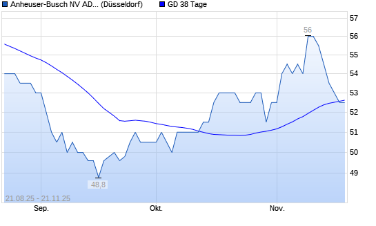 Mit dem Anstieg auf 52,50 EUR hat die Anheuser-Busch InBev ADR-Aktie am 20.11.2025 die 38-Tage-Linie nach oben gekreuzt.