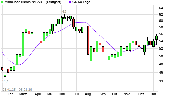 Mit dem Anstieg auf 53,50 EUR hat die Anheuser-Busch InBev ADR-Aktie am 07.01.2026 die 50-Tage-Linie nach oben gekreuzt.