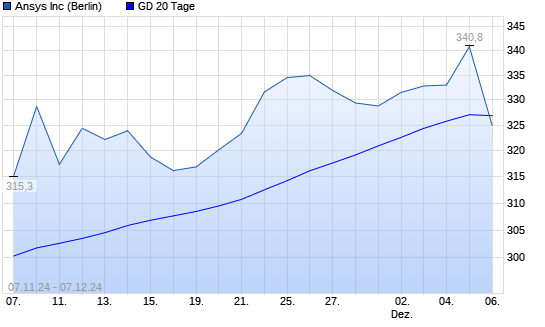 Mit dem Anstieg auf 327,30 EUR hat die Ansys-Aktie am 06.12.2024 die 20-Tage-Linie nach oben gekreuzt.