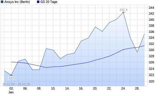 Mit dem Rücksetzer auf 329,00 EUR hat die Ansys-Aktie am 28.01.2025 die 20-Tage-Linie nach unten gekreuzt.