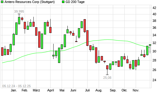Mit dem Anstieg auf 30,62 EUR hat die Antero Resources-Aktie am 04.12.2025 die 200-Tage-Linie nach oben gekreuzt.