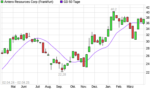 Mit dem Anstieg auf 37,22 EUR hat die Antero Resources-Aktie am 01.04.2025 die 50-Tage-Linie nach oben gekreuzt.