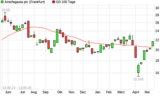 Mit dem Anstieg auf 20,77 EUR hat die Antofagasta-Aktie am 12.05.2025 die 100-Tage-Linie nach oben gekreuzt.
