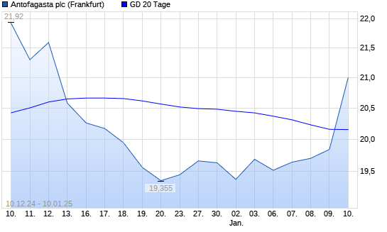 Mit dem Anstieg auf 19,84 EUR hat die Antofagasta-Aktie am 09.01.2025 die 20-Tage-Linie nach oben gekreuzt.