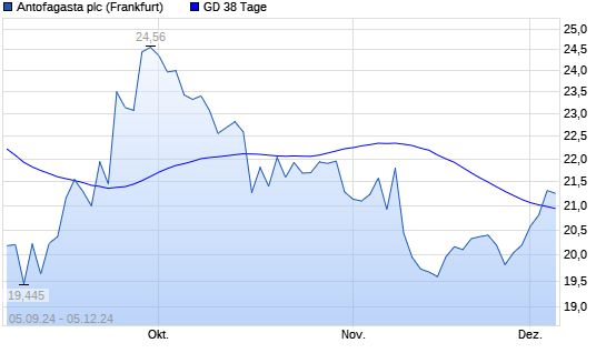 Mit dem Anstieg auf 21,32 EUR hat die Antofagasta-Aktie am 04.12.2024 die 38-Tage-Linie nach oben gekreuzt.