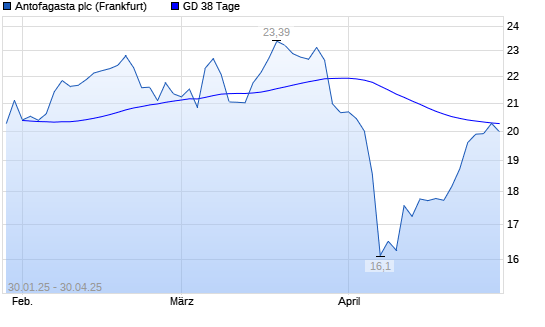 Mit dem Anstieg auf 20,27 EUR hat die Antofagasta-Aktie am 29.04.2025 die 38-Tage-Linie nach oben gekreuzt.