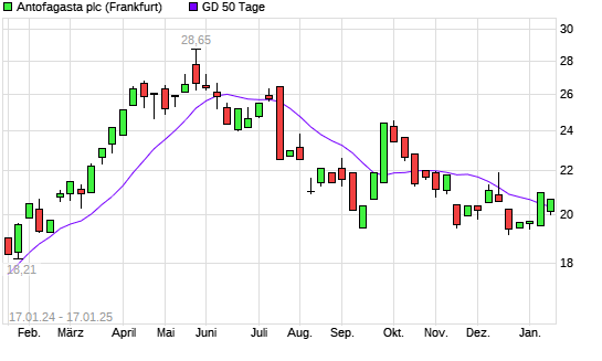 Mit dem Anstieg auf 20,40 EUR hat die Antofagasta-Aktie am 16.01.2025 die 50-Tage-Linie nach oben gekreuzt.