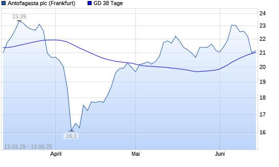 Mit dem Rücksetzer auf 20,98 EUR hat die Antofagasta-Aktie am 12.06.2025 die 38-Tage-Linie nach unten gekreuzt.