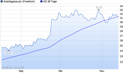 Mit dem Rücksetzer auf 31,22 EUR hat die Antofagasta-Aktie am 14.11.2025 die 38-Tage-Linie nach unten gekreuzt.
