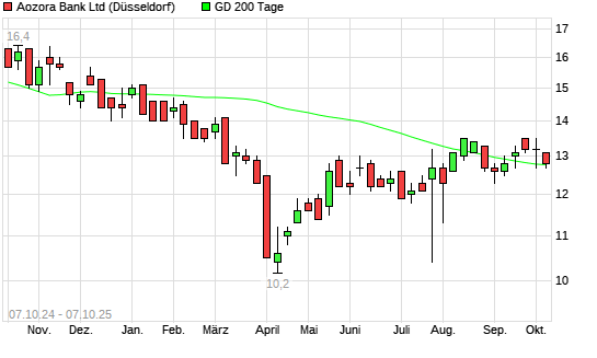 Mit dem Rücksetzer auf 12,70 EUR hat die Aozora Bank-Aktie am 06.10.2025 die 200-Tage-Linie nach unten gekreuzt.