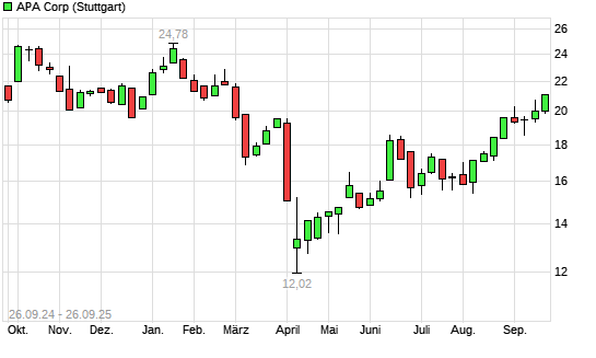 Mit dem Anstieg auf 20,70 EUR hat die Apache-Aktie (ISIN US03743Q1085) am 25.09.2025 ein neues 6-Monats-Hoch erreicht und damit den Kurs vom 17.09.2025 eingestellt.