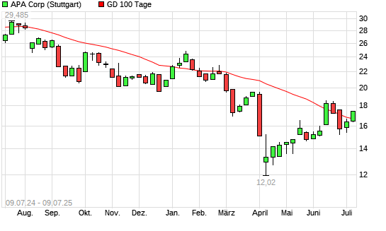 Mit dem Anstieg auf 17,67 EUR hat die Apache-Aktie am 08.07.2025 die 100-Tage-Linie nach oben gekreuzt.