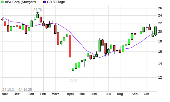 Mit dem Anstieg auf 20,70 EUR hat die Apache-Aktie am 23.10.2025 die 50-Tage-Linie nach oben gekreuzt.