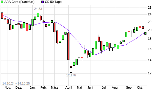 Mit dem Rücksetzer auf 19,00 EUR hat die Apache-Aktie am 13.10.2025 die 50-Tage-Linie nach unten gekreuzt.