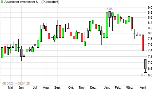 Mit dem Rücksetzer auf 7,00 EUR hat die Apartment Investment Management-Aktie (ISIN US03748R7474) am 07.04.2025 ein neues 12-Monats-Tief erreicht und damit den Kurs vom 29.05.2024 eingestellt.
