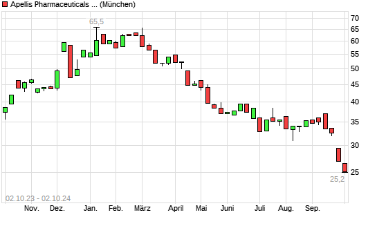 Mit dem Rücksetzer auf 25,06 EUR hat die Apellis Pharmaceuticals-Aktie (ISIN US03753U1060) am 01.10.2024 ein neues 12-Monats-Tief erreicht und damit den Kurs vom 30.09.2024 eingestellt.