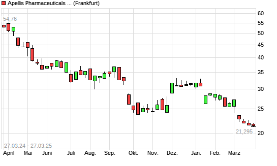 Mit dem Rücksetzer auf 21,29 EUR hat die Apellis Pharmaceuticals-Aktie (ISIN US03753U1060) am 26.03.2025 ein neues 5-Jahres-Tief erreicht und damit den Kurs vom 07.08.2023 eingestellt.