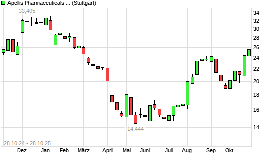 Mit dem Anstieg auf 25,34 EUR hat die Apellis Pharmaceuticals-Aktie (ISIN US03753U1060) am 27.10.2025 ein neues 6-Monats-Hoch erreicht und damit den Kurs vom 24.10.2025 eingestellt.