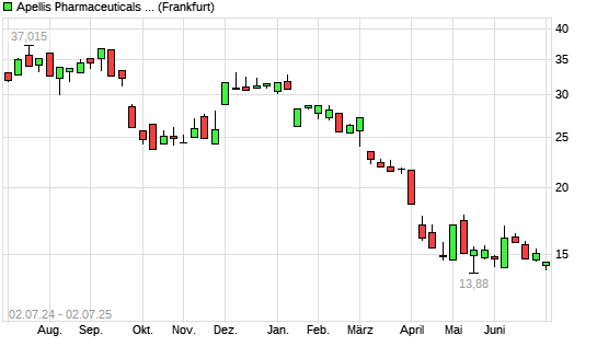 Mit dem Rücksetzer auf 13,98 EUR hat die Apellis Pharmaceuticals-Aktie (ISIN US03753U1060) am 01.07.2025 ein neues All-Time-Low erreicht und damit den Kurs vom 02.06.2025 eingestellt.