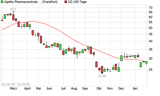 Mit dem Anstieg auf 28,59 EUR hat die Apellis Pharmaceuticals-Aktie am 31.01.2025 die 100-Tage-Linie nach oben gekreuzt.
