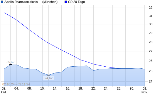 Mit dem Rücksetzer auf 24,38 EUR hat die Apellis Pharmaceuticals-Aktie am 01.11.2024 die 20-Tage-Linie nach unten gekreuzt.