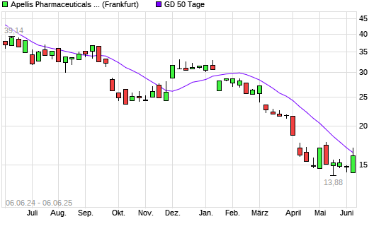 Mit dem Rücksetzer auf 15,55 EUR hat die Apellis Pharmaceuticals-Aktie am 05.06.2025 die 50-Tage-Linie nach unten gekreuzt.