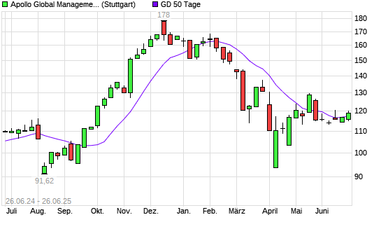 Mit dem Rücksetzer auf 117,75 EUR hat die Apollo Global Management-Aktie am 25.06.2025 die 50-Tage-Linie nach unten gekreuzt.