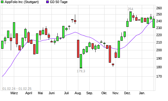 Mit dem Anstieg auf 243,00 EUR hat die AppFolio-Aktie am 31.01.2025 die 50-Tage-Linie nach oben gekreuzt.
