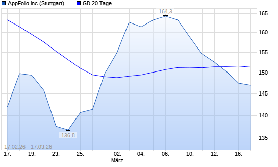Mit dem Rücksetzer auf 150,80 EUR hat die AppFolio-Aktie am 16.03.2026 die 20-Tage-Linie nach unten gekreuzt.