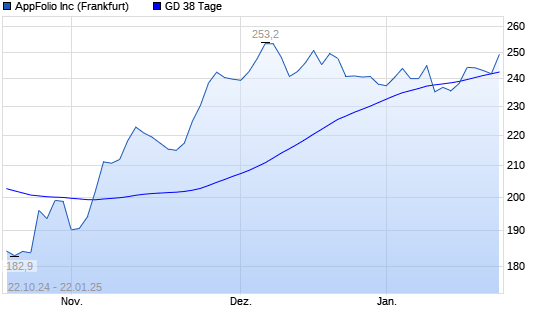 Mit dem Rücksetzer auf 241,80 EUR hat die AppFolio-Aktie am 21.01.2025 die 38-Tage-Linie nach unten gekreuzt.