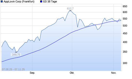 Mit dem Anstieg auf 548,00 EUR hat die AppLovin-Aktie am 06.11.2025 die 38-Tage-Linie nach oben gekreuzt.
