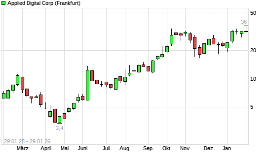 Mit dem Anstieg auf 34,20 EUR hat die Applied Digital-Aktie (ISIN US0381692070) am 28.01.2026 ein neues All-Time-High erreicht und damit den Kurs vom 27.01.2026 eingestellt.