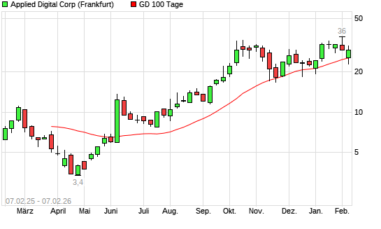 Mit dem Anstieg auf 28,90 EUR hat die Applied Digital-Aktie am 06.02.2026 die 100-Tage-Linie nach oben gekreuzt.