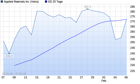 Mit dem Anstieg auf 274,40 EUR hat die Applied Materials-Aktie am 06.02.2026 die 20-Tage-Linie nach oben gekreuzt.