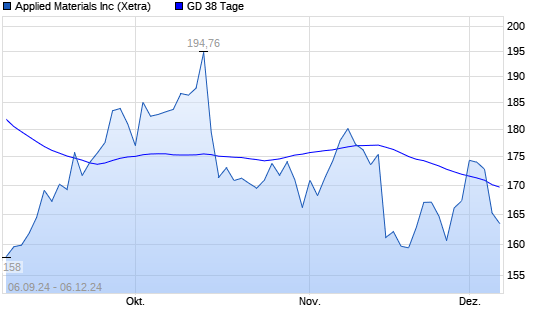 Mit dem Rücksetzer auf 161,80 EUR hat die Applied Materials-Aktie am 05.12.2024 die 38-Tage-Linie nach unten gekreuzt.