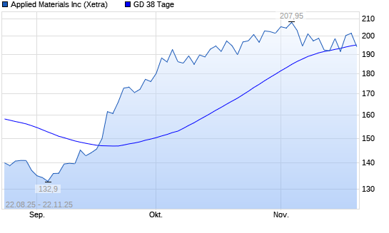 Mit dem Rücksetzer auf 190,80 EUR hat die Applied Materials-Aktie am 21.11.2025 die 38-Tage-Linie nach unten gekreuzt.