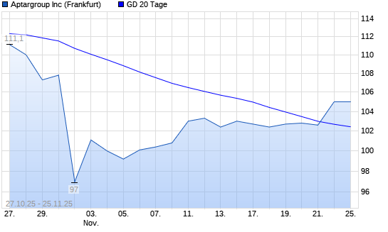 Mit dem Anstieg auf 105,00 EUR hat die AptarGroup-Aktie am 24.11.2025 die 20-Tage-Linie nach oben gekreuzt.