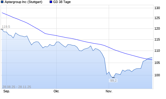 Mit dem Anstieg auf 106,90 EUR hat die AptarGroup-Aktie am 27.11.2025 die 38-Tage-Linie nach oben gekreuzt.