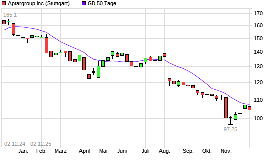 Mit dem Rücksetzer auf 106,70 EUR hat die AptarGroup-Aktie am 01.12.2025 die 50-Tage-Linie nach unten gekreuzt.