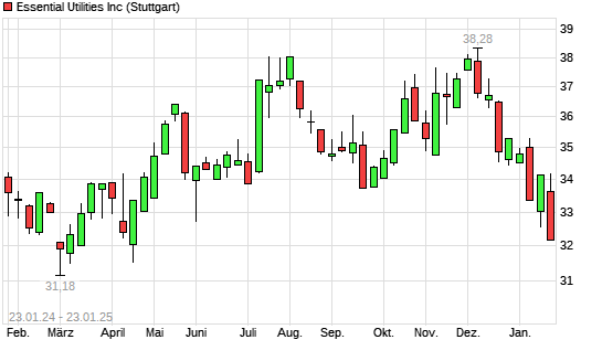 Mit dem Rücksetzer auf 32,09 EUR hat die Aqua America-Aktie (ISIN US29670G1022) am 22.01.2025 ein neues 6-Monats-Tief erreicht und damit den Kurs vom 14.01.2025 eingestellt.